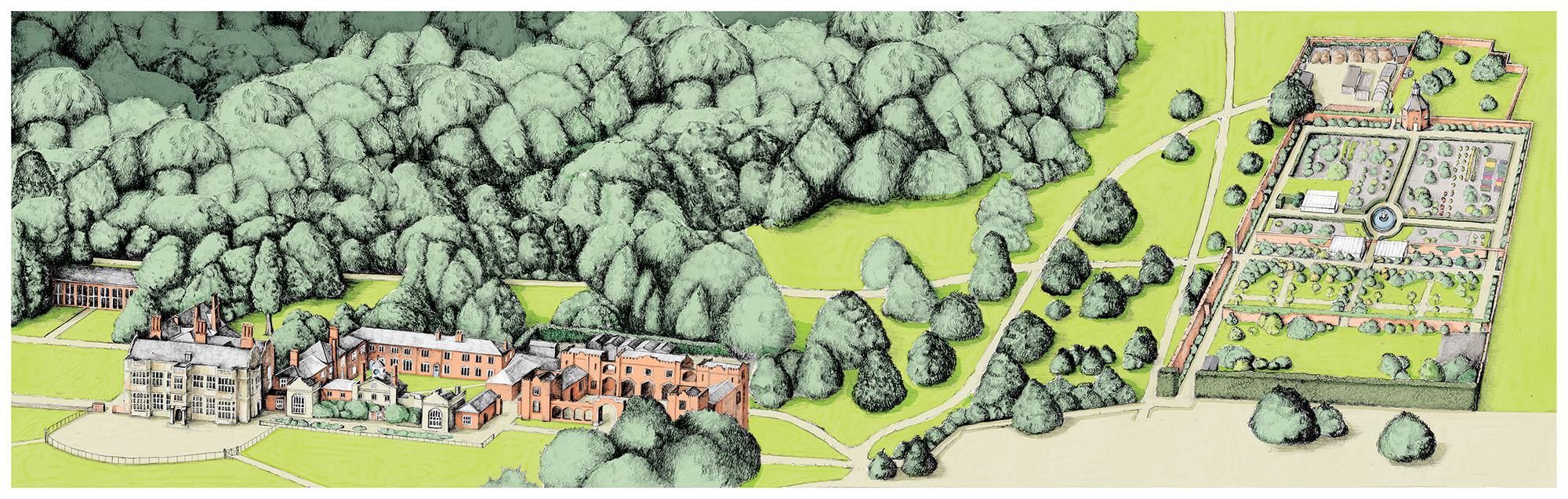 I was commissioned to create maps for both Felbrigg Hall and Sheringham Park as part of the National Trust’s commitment to improving accessibility for visitors to their properties. Part of a wider initiative to improve access at these two sites, the brief required me to create maps that would be both visually interesting, whilst also providing important information in a clear legible way. I began by illustrating base maps which I then layered with way-marked routes for visitors of all abilities. A considerable amount of information was required to highlight specific features of the sites, including slopes, muddy areas, benches and visitor facilities. The maps were reproduced onto aluminium composite for display in the car parks. Printed versions of the maps were also made available to visitors, as well as featuring in the properties guidebook and online.