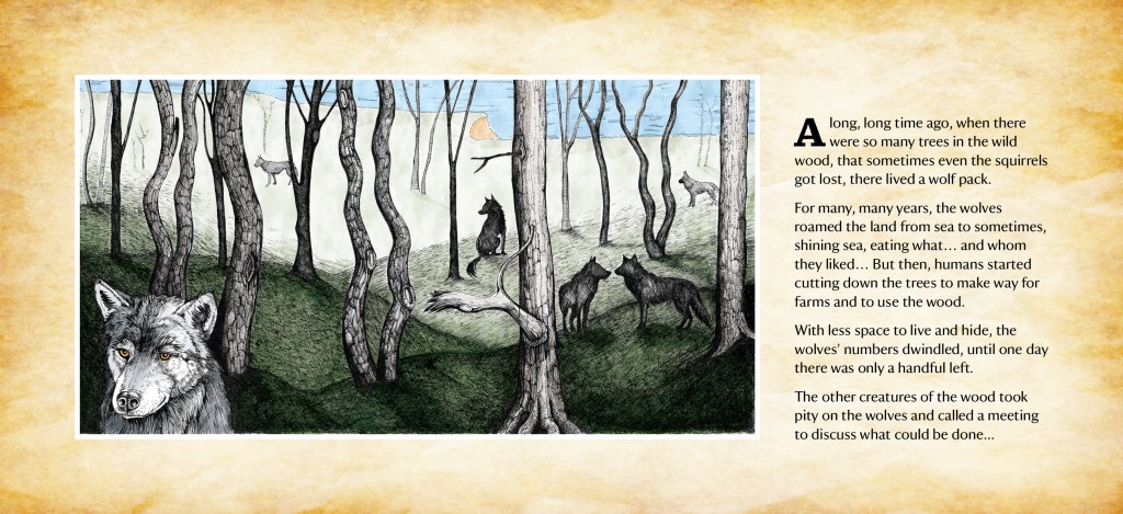 The National Trust’s Felbrigg Hall 2023 family Christmas event, The Wolves of Wild Wood Hall, offered visitors an indoor story trail through the Hall’s seasonally decorated ground-floor. I was commissioned to illustrate the story of a pack of wolves living in tunnels under the Hall.