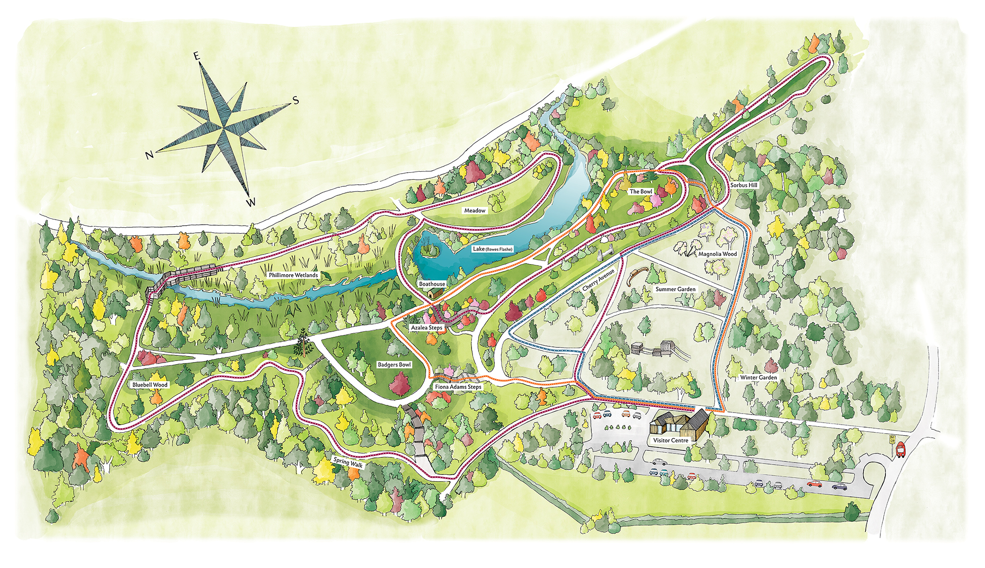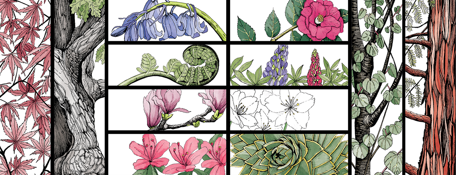 As part of Winkworth’s new visitor centre project, I was commissioned to illustrate a 2D map for interpretation graphics and printed literature. In addition, I was commissioned to illustrate 4 tree species, relevant to the site. These large illustrations have been printed onto plywood for display in the new visitor centre.